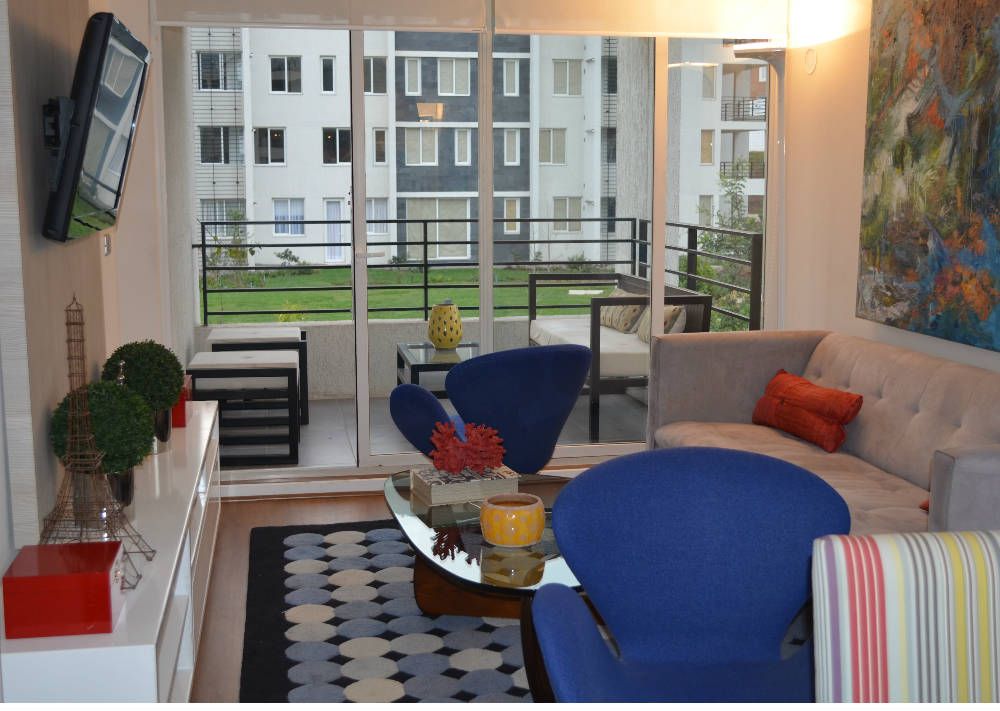 Condominio en Huechuraba con solo 8 edificios de 4 pisos con ascensor, rodeado de Jardines en amplios espacios comunes con hermosas vistas.