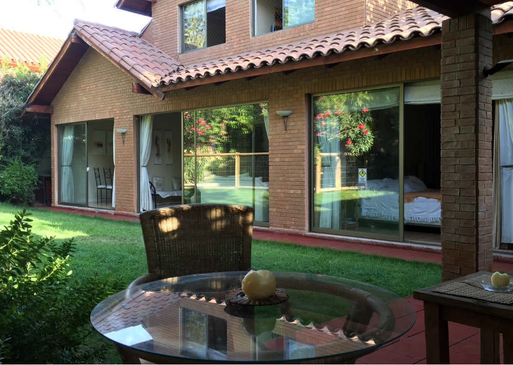 En Arriendo casa amoblada rodeada de jardines, árboles frutales, en jardín se ubica una hermosa terraza, con pérgola, agradables sombras y piscina con protección para niños.