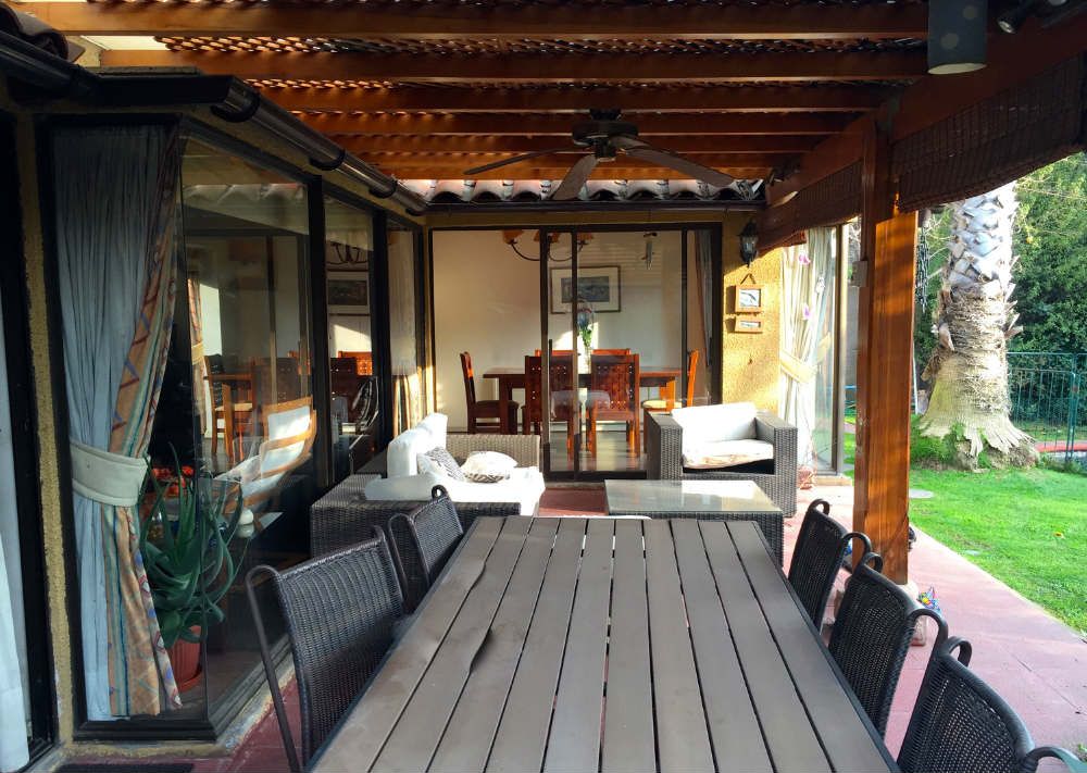 Cocina ampliada con  comedor de diario, salida a logia y patio de servicios, salida a jardines también. Terraza Techada